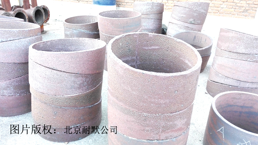 燃煤火力發(fā)電廠采用管道輸送物料有氣力干粉輸送,也有水力漿料輸送。管道內(nèi)壁承受著物料的沖蝕磨損,以及漿料的氯離子晶間腐蝕和氣蝕作用,加速了對鋼管內(nèi)壁的磨損、腐蝕。特別是彎頭、三通、變徑管等過流管件,使用壽命最短15天,最長也不超過120天。